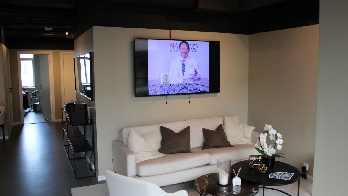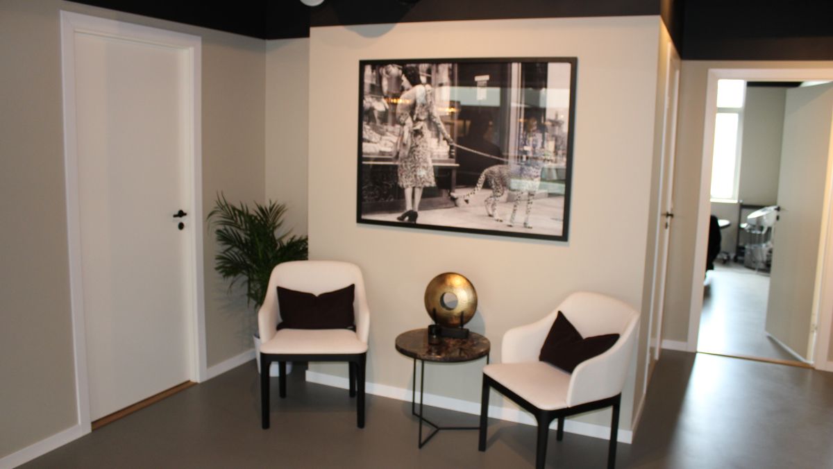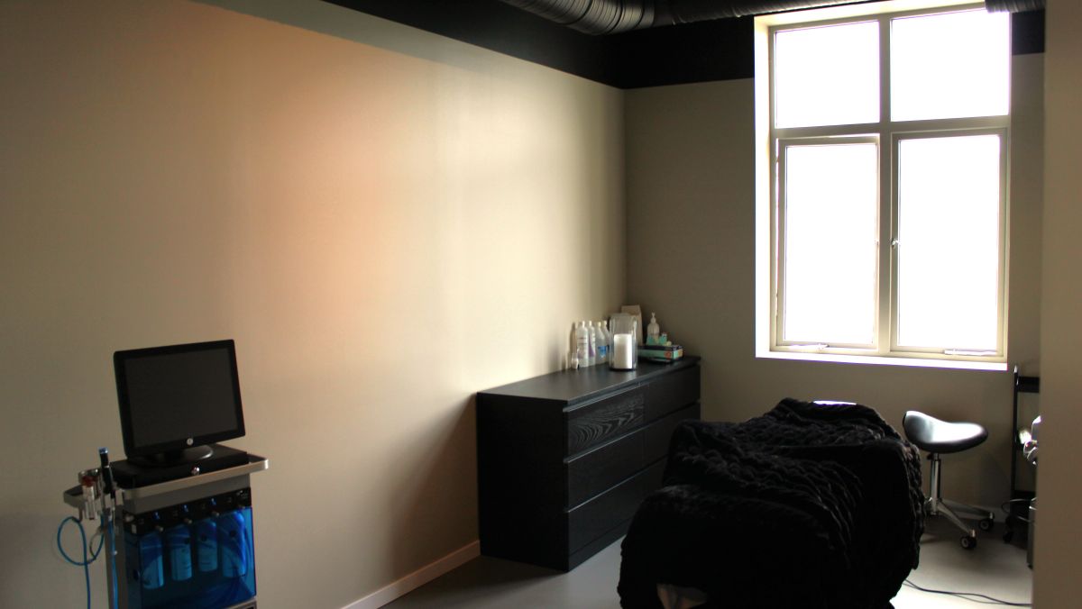 Her har vi totalrenovert lokalet som har ført til denne flotte, lyse klinikken i øverste etasje på Galleriet i Bergen. Klinikken har to behandlingsrom og et fint resepsjonsområde med moderne interiør og lounge.