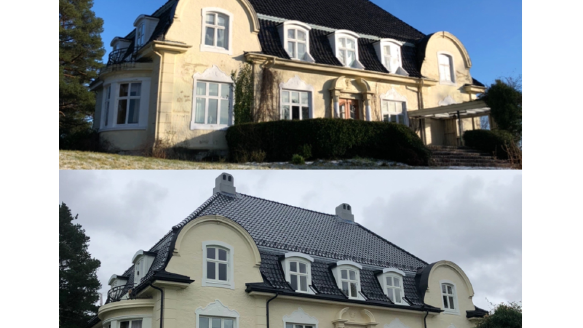 Den flotte eneboligen fra 1900 har gjennomgått en totalrehabilitering av tak og fasade, det er opprettet luftesjikt på tak samt det er skiftet vinduer rundt hele bygget. Noen av isokittvinduene fra Bykle er kurvede mens noen har buet topp. De er spesiallaget for et buet design. Både tak og stein var fra det opprinnelige byggeåret 1900. Eneboligen stod ferdigstilt i 2020.